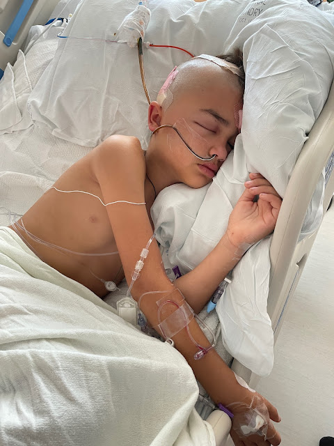 Mikey started therapy and played groggy uno. Then he played connect four against me and struggled to put a simple puzzle together. He did pass his cognitive screening. We were hoping his sluggish thinking was due to his medications and swollen brain that would resolve in a few days. It was a little concerning to us. He rested better and it was the first day that when he was awake he wasn't writhing in pain or nausea.